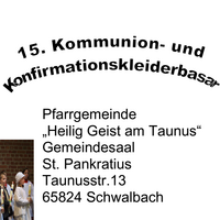 Pfarrei Heilig Geist am Taunus 15. Kommunion- und Konfirmationskleiderbasar 15. Kommunion- und Konfirmationskleiderbasar Lesezeichen hinzufügen ausdrucken teilen