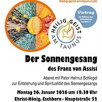 Pfarrei Heilig Geist am Taunus Vortrag: Der Sonnengesang 26.01.2026 Heilig-Geist-am-Taunus Vortrag: Der Sonnengesang 26.01.2026 Der Sonnengesang des Franz von Assisi Abend mit Pater Helmut Schlegel zu