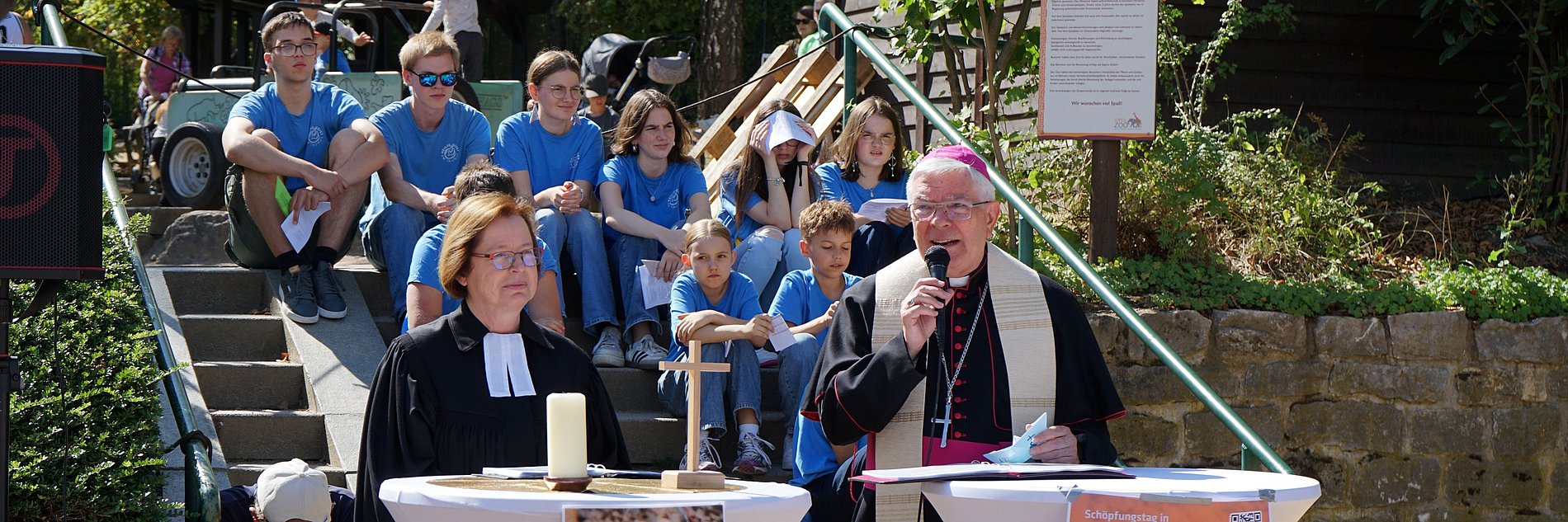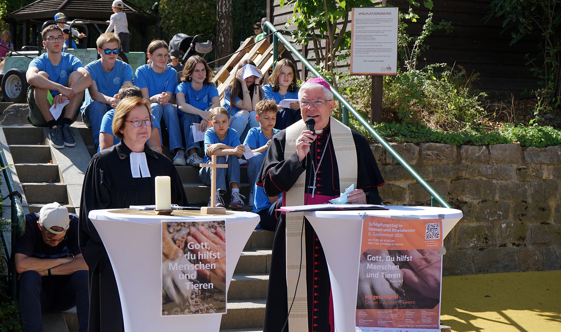 Gut gewählt war der Opel-Zoo als Veranstaltungsort für den Ökumenischen Tag der Schöpfung 2025. Viele Familien tummelten sich bei bestem Spätsommerwetter auf dem Gelände in Kronberg, als die zentrale Veranstaltung der Arbeitsgemeinschaft Christlicher Kirchen (ACK) Hessen-Rheinhessen gefeiert wurde, die unter dem Leitwort „Gott, du hilfst Menschen und Tieren.“ aus Psalm 36 stand.