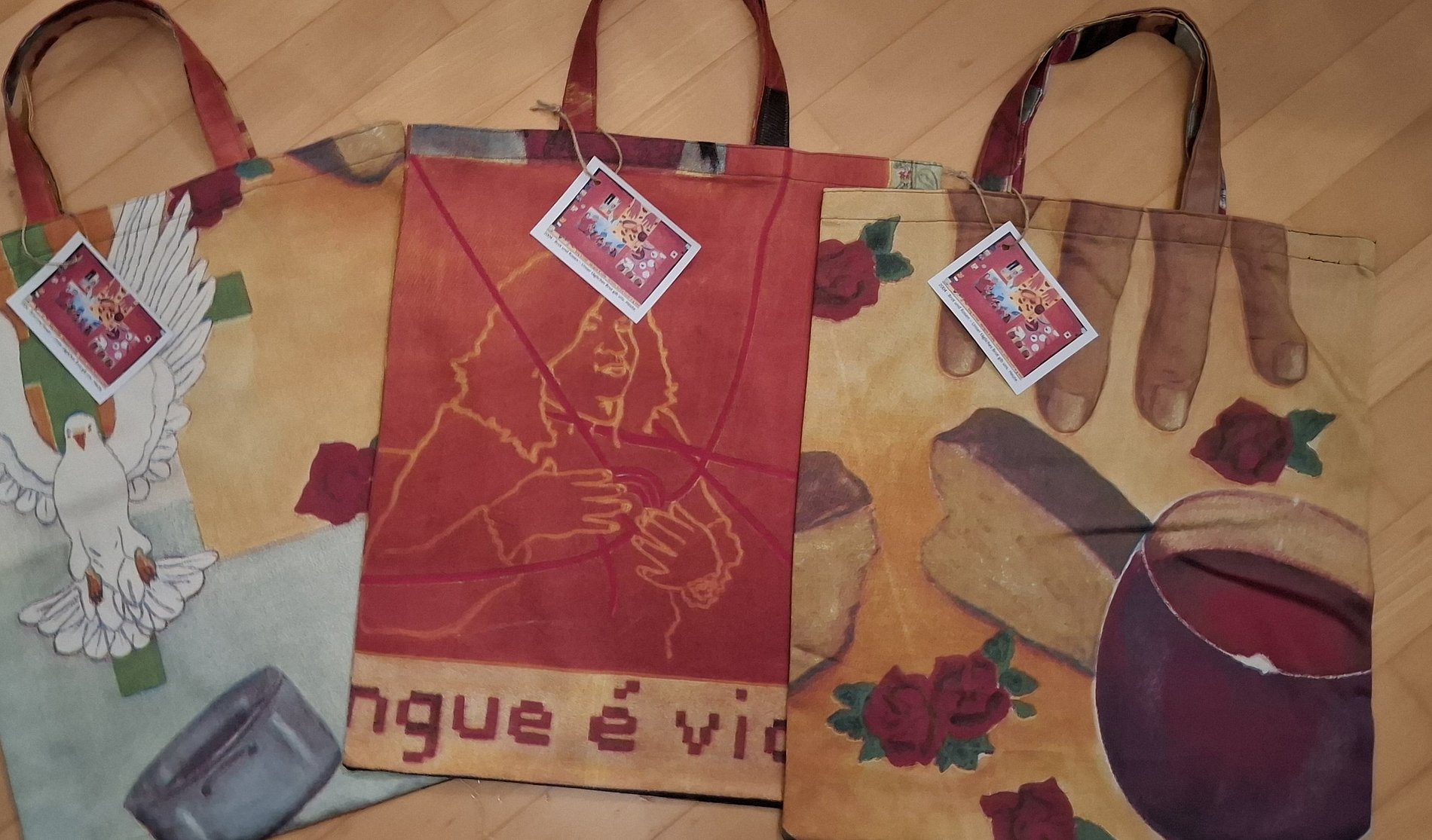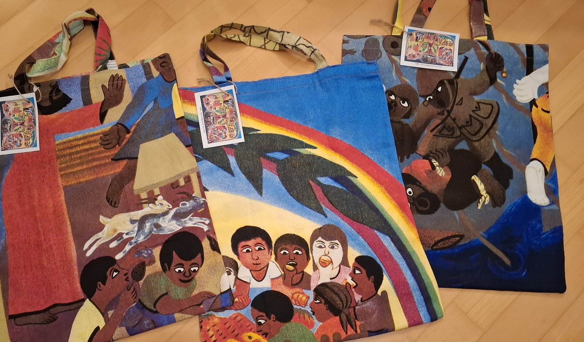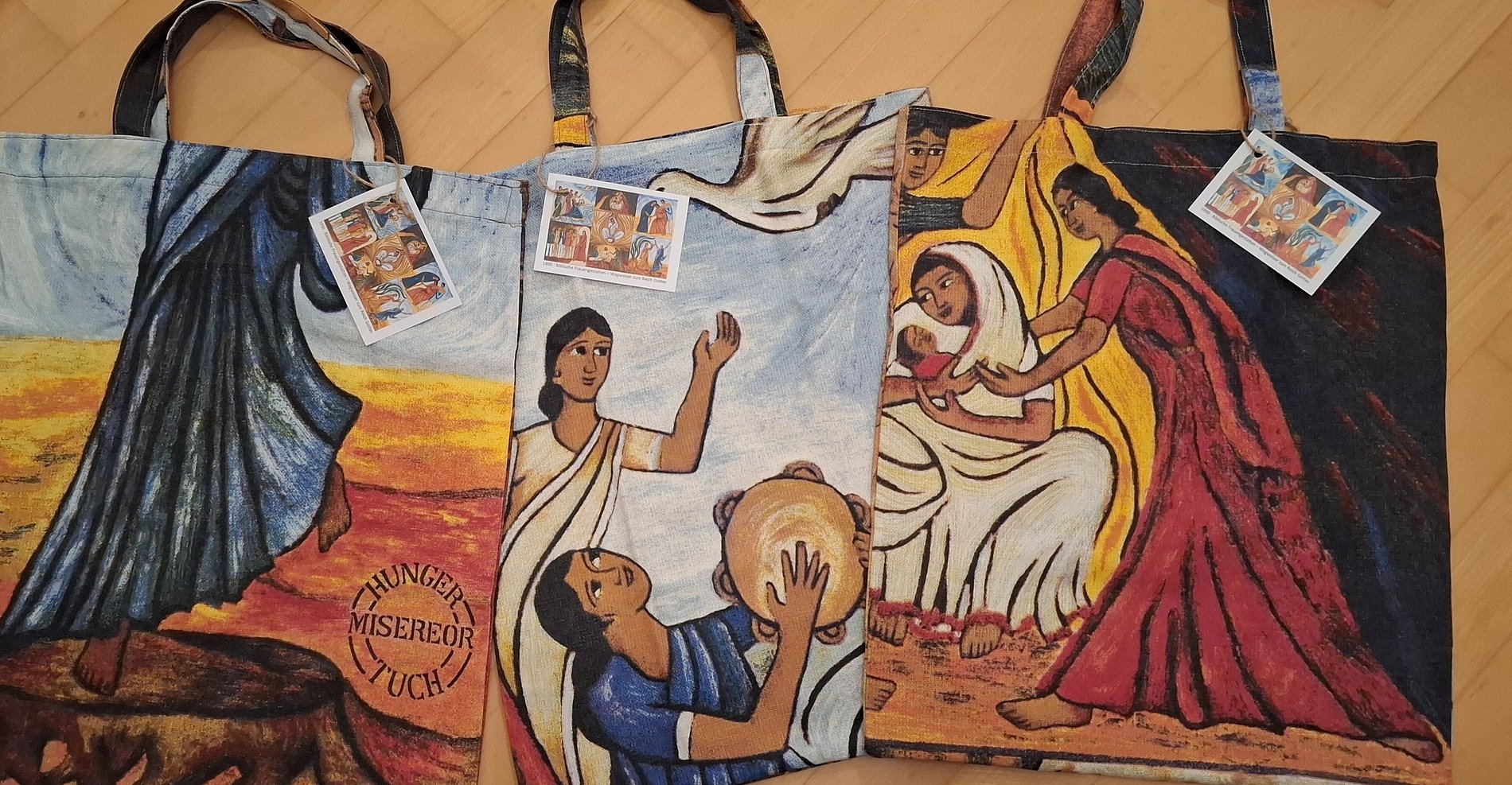 Diese Taschen werden nun am Stand der Pfarrei auf dem Weihnachtsmarkt in Bad Soden 6. Dezember ab 16.00 Uhr und 7. Dezember 2025 im Alten Kurpark gegen eine Spende zugunsten des Hilfswerkes Misereor abgegeben.