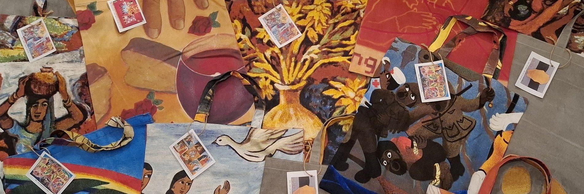 Ehrlicherweise nichts, bisher zumindest, denn nun verwandelten 12 Frauen von jung bis alt die Hungertücher in der Nähaktion Anfang November in einmalige Einkaufstaschen! Aufgrund des jeweiligen Ausschnittes aus dem Hungertuch ist jede Tasche ein Unikat.