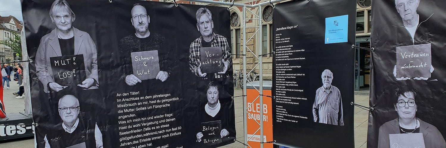 In der dokumentarischen Foto-Ausstellung „Betroffene zeigen Gesicht“ kommen Menschen zu Wort, die in ihrer Kindheit sexualisierte Gewalt innerhalb der Kirche erleben mussten. Die Ausstellung zeigt berührende Einzelschicksale, keine nüchternen Zahlen und Fakten. Dazu kombinierte Dr. Ilonka Czerny (Akademie Rottenburg-Stuttgart) Kindheitsfotos mit kurzen, persönlichen Texten der Betroffenen. Die Ausstellung ist deutschlandweit unterwegs.